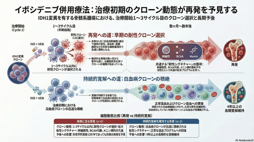 Bloodの論文でも試してみました。漢字が若干崩れていますが、とても分かりやすいです。Turkalj S, Radtke FA, Stoilova B, et al. Rapid clonal selection within early hematopoietic cell compartments presages the outcome of ivosidenib combination therapy. Blood 2026;147(6):613–32.