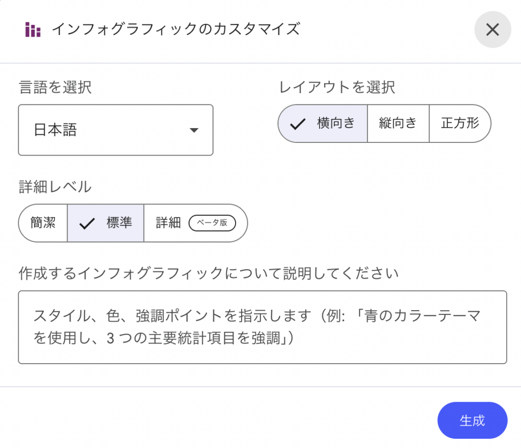 なお、インフォグラフィックの作成には少々時間はかかりますので、その点はご了承ください。